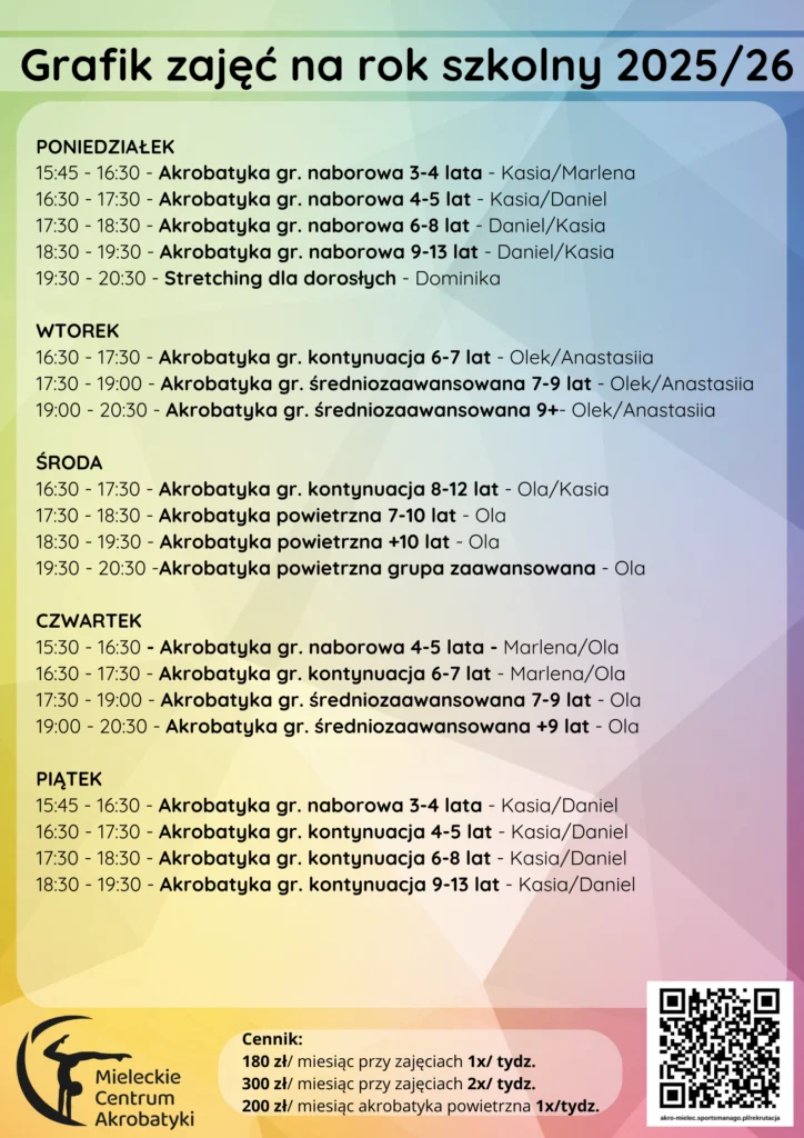 Obozy sportowe dla dzieci to zorganizowane wyjazdy wakacyjne, podczas których dzieci rozwijają umiejętności akrobatyczne, sprawność fizyczną i aktywnie spędzają czas pod okiem wykwalifikowanych trenerów. To także świetna okazja do budowania pewności siebie, nawiązywania przyjaźni i nauki współpracy w grupie przez zabawę i ruch.
